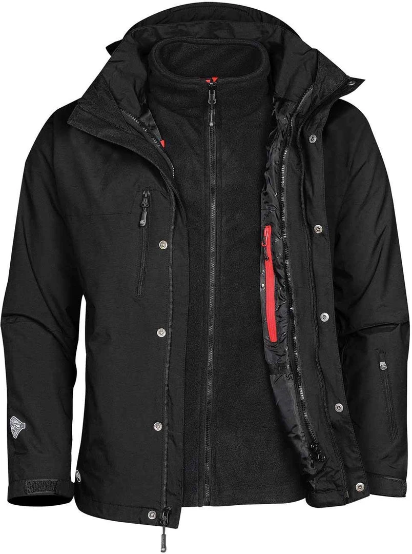 Extreme performance, functional design, 2.5-layer technical shell, features sealed seams for enhanced weatherproof protection, interior heat reflective mesh lining, and a zip-out fleece liner to retain body heat in extreme climates.