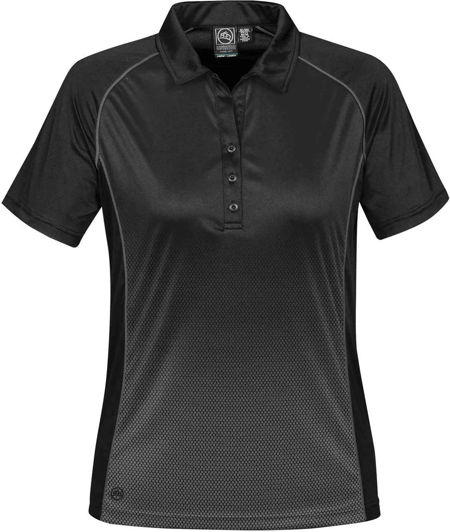 With a stylish sublimated print design combined with H2X-DRY® moisture management technology, this performance polo offers both style and technicality to provide long lasting comfort and performance. Key features include raglan sleeves with contrast cover stitching, self-fabric collar, and an open-v placket for women.